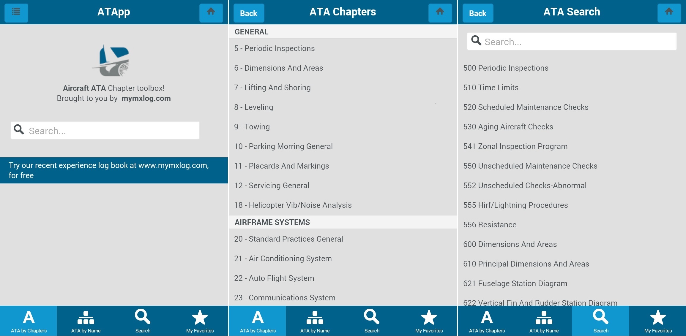 ATApp is a app for iOS and Android phones and tablets. The app gives you a quick lookup of ATA information for technicians. Users can favorite frequently used ATA codes for quick lookup. To find the ATA codes users need ATApp offers a fast and easy search.