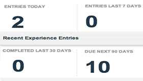 Our simple dashboard will keep count of all recent experience entries and give you a simple and elegant view of how many entries your staff has completed during the last week or month. You will also be able to see if you have any training coming up in the next 3 months for any of your current staff.