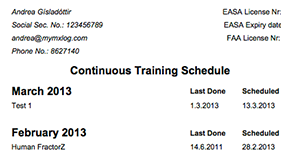 Our reporting feature is essential to the modern airline or part-145 service, easily and simply creating procedure reports for recent experience, continuous requirements status & training schedule when needed with no hassle. Get it ready within minutes for future aviation authorities or your internal QA department.